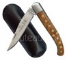 Couteau de poche LE BITORD manche Loupe de gen�vrier par David PONSON - lame et mitre inox 12C27 - �tui cuir pl...